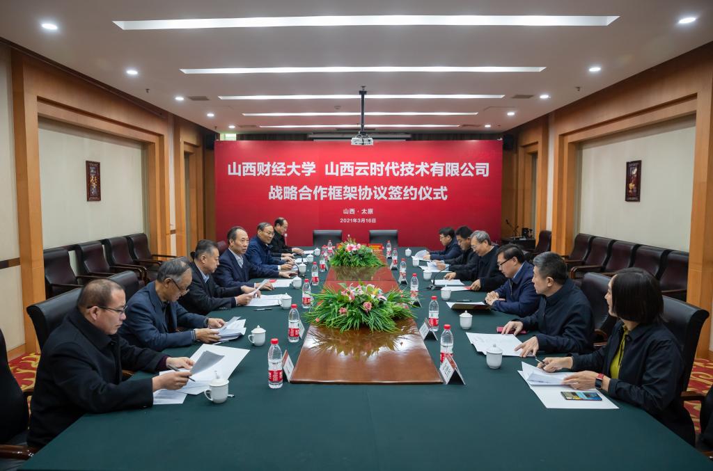 3月16日上午,我校与山西云时代技术有限公司(以下简称“云时代公司”)签署战略合作框架协议。校党委书记常乃军,云时代公司党委书记、董事长盛佃清出席签约仪式并讲话,党委常委、副校长卢庆山与云时代公司副总经理苏涛代表双方签约。签约仪式由校长刘维奇主持。