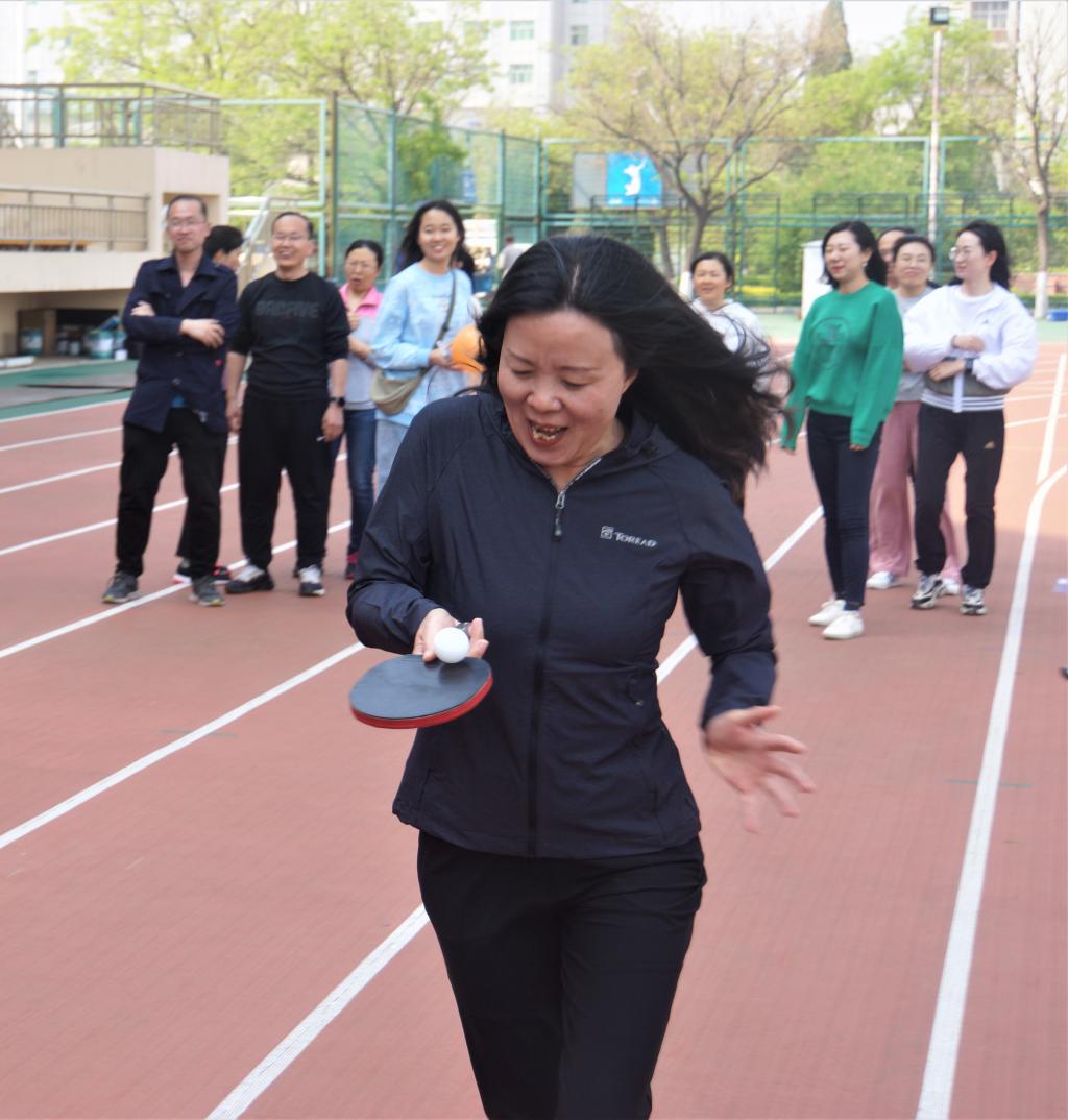 在分组之后,激动人心的趣味运动会正式开始了!运动会的第一项比赛是托球跑(计时赛),各组队员分为两队,每队列6人,面对面站立,比赛开始后,由其中一方将乒乓球放在球拍上,可跑可走,完成20米的比赛,然后将球交到队友手中,接力完成本轮比赛。两队同时比赛,分两轮完成全部比赛。
