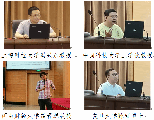 冯兴东教授的报告题目是“Quantile Regression for Nonignorable Missing Data with Its Application of Analyzing Electronic Medical Records”。他首先对电子病历数据(EMR)的价值和EMR分析所面临的挑战进行了介绍,针对EMR缺失值的不可忽略性提出IPW方法对分位数回归进行优化。他详细介绍了利用病历数据建模的过程和参数估计的方法,最后与其他模型做对比,验证该模型具有良好的解释性。王学钦教授的报告题目是“最优子集选取问题的研究进展——算法和统计的融合”。他首先就统计推断和计算机算法的关系进行了讲解,并介绍了最优子集选取问题和针对此问题已有的模型和算法。他提出基于“剪接”的计算复杂度为多项式时间的算法,即自适应最佳子集选择算法(ABESS算法),并详细讲解了ABESS算法的思想、证明了ABESS算法解具有统计性质,展示了ABESS算法在应用上的优越性。常晋源教授以“On the modelling and prediction of high-dimensional functional time series”为题开讲。他先以英国的气温数据、日本死亡率数据和法国能源消耗数据为例对函数型时间序列进行了介绍,接着详细介绍了高维函数型时间序列数据建模的方法推导过程,并就模型参数估计和数据预测方法进行了分享。陈钊博士以“Statistical Applications – Stock Investment”为题展开报告。他首先比较了统计应用和应用统计的区别,并以股票投资问题为例展示了由统计应用到应用统计的过程。他还介绍了资产选择与投资组合问题的研究进展和目前存在的问题,进而引出了资产选择的新标准,资本资产定价模型(CAPM)、夏普比率和动态α指数;同时,他就基于特征筛选的资产选择问题展开讲解,并且导入了投资组合管理的前沿方法,讲解了资产选择的新过程并进行了实证分析。