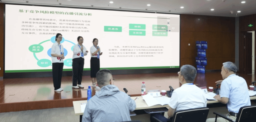 6月15日上午,研究生团队围绕新质生产力驱动制造业高质量发展路径、数据要素市场化的动态博弈机制、心血管疾病负担时空趋势、认知障碍干预探索、企业ESG表现分析、教育-就业关联的技能错配研究、零售直播引流机制、中美产业结构差异演化等选题展开精彩展示和答辩。选手们凭借扎实的理论基础和创新性的模型构建,结合实际案例进行展示。评委针对变量间的逻辑关系、数据来源可靠性、模型适配性等方面进行提问,并给予了专业性建议。