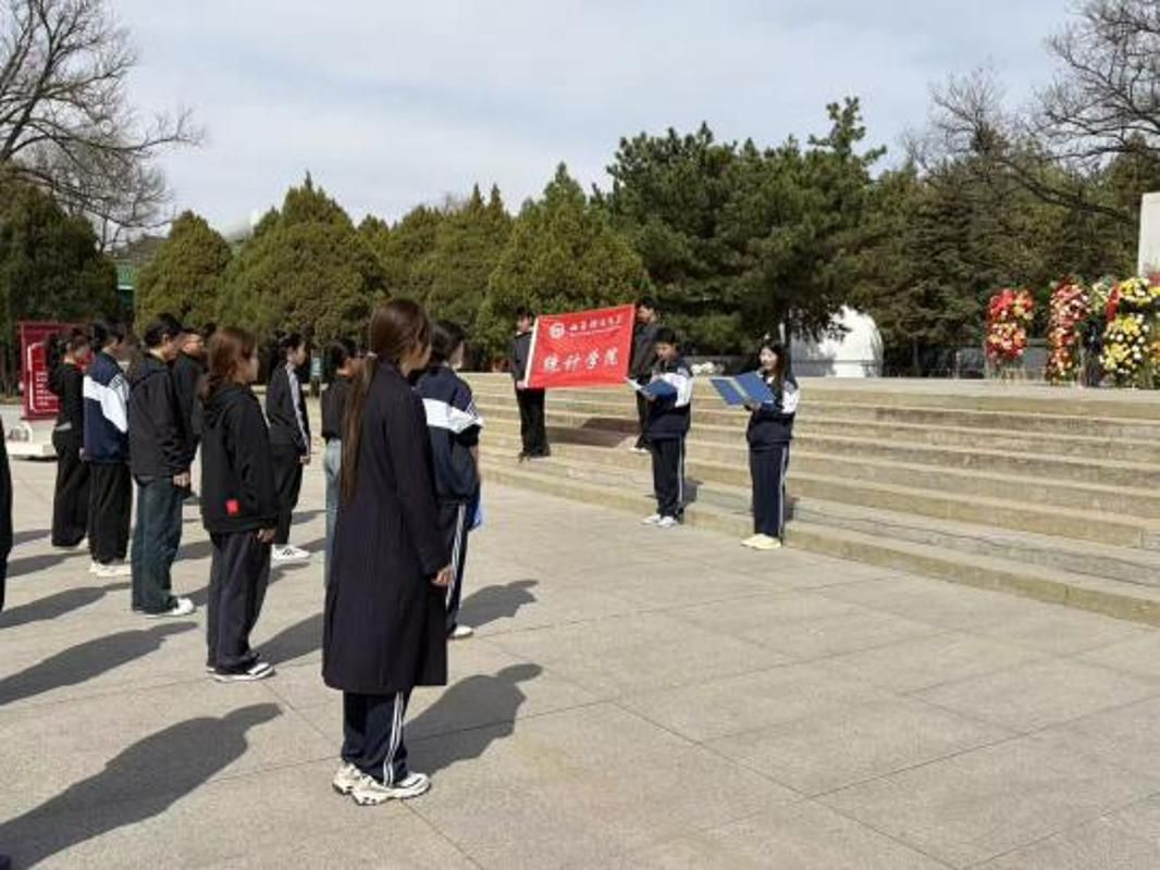 主题朗诵环节,同学们以饱满的热情,诵读《缅怀革命先烈,勇担青春使命》。“我们是新时代的青年,手中没有钢枪,心中却有家国……”激昂的文字、真挚的情感在陵园上空回荡,深深感染了在场的每一个人,字里行间彰显统计学子勇担时代重任的青春担当。