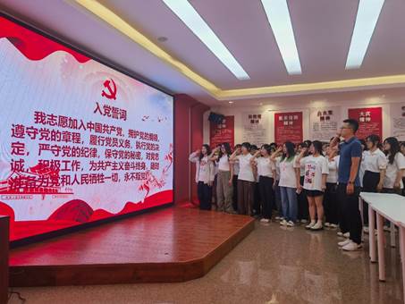 为庆祝中国共产党成立103周年,教育引导新发展党员提升党性修养、增强政治定力,7月1日,betway88西汉姆在青年成长领航馆举办“七一”主题党日活动暨新发展党员宣誓仪式。学院党委副书记、党支部书记以及新接收的预备党员参加活动和仪式。