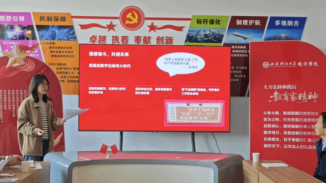 本次主题微党课实现了红色教育和专业教育的有机融合,进一步厚植了支部党员的专业情怀与使命意识。下一步,党支部将持续打造“红色统计”学习品牌,推动红色统计精神内化于心、外化于行,引领青年学子在求真务实中成长成才,以实际行动迎接建党105周年。
