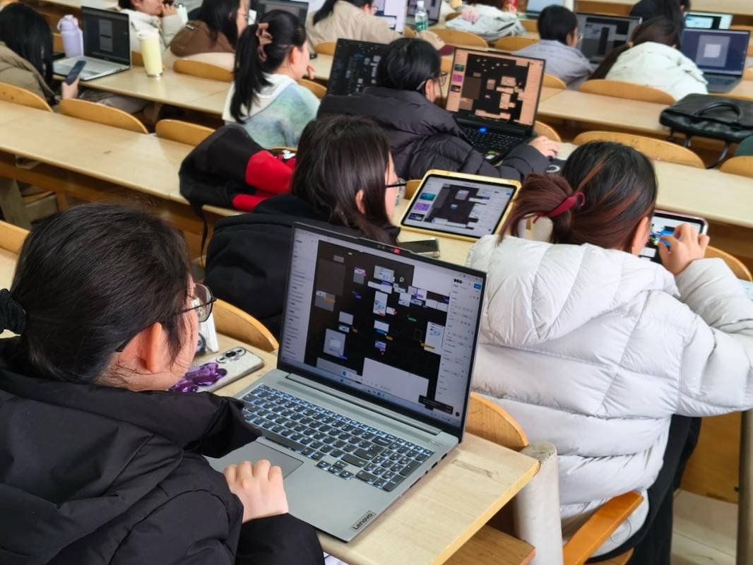 三、 强化硬核技能,深化产教融合1月17日,学院战略合作伙伴——上海沐数科技有限责任公司的华中区负责人贺佳楠与数据工程师邓威,联袂讲授了《FineReport 数据看板实战营》。值得一提的是,主讲人贺佳楠系我院2019级校友,她带着对母校的深厚情谊与企业一线经验回归课堂。课程设计紧贴实战,贯穿MySQL、Figma、FineReport等核心技术。在教学上,两位老师构建了严谨的学习闭环:从课前环境部署的精心准备,到课中“讲练结合”的悉心指导,再到随堂测试与实战作业的巩固提升。同学们在沉浸式的学习氛围中,练就了操作技能。