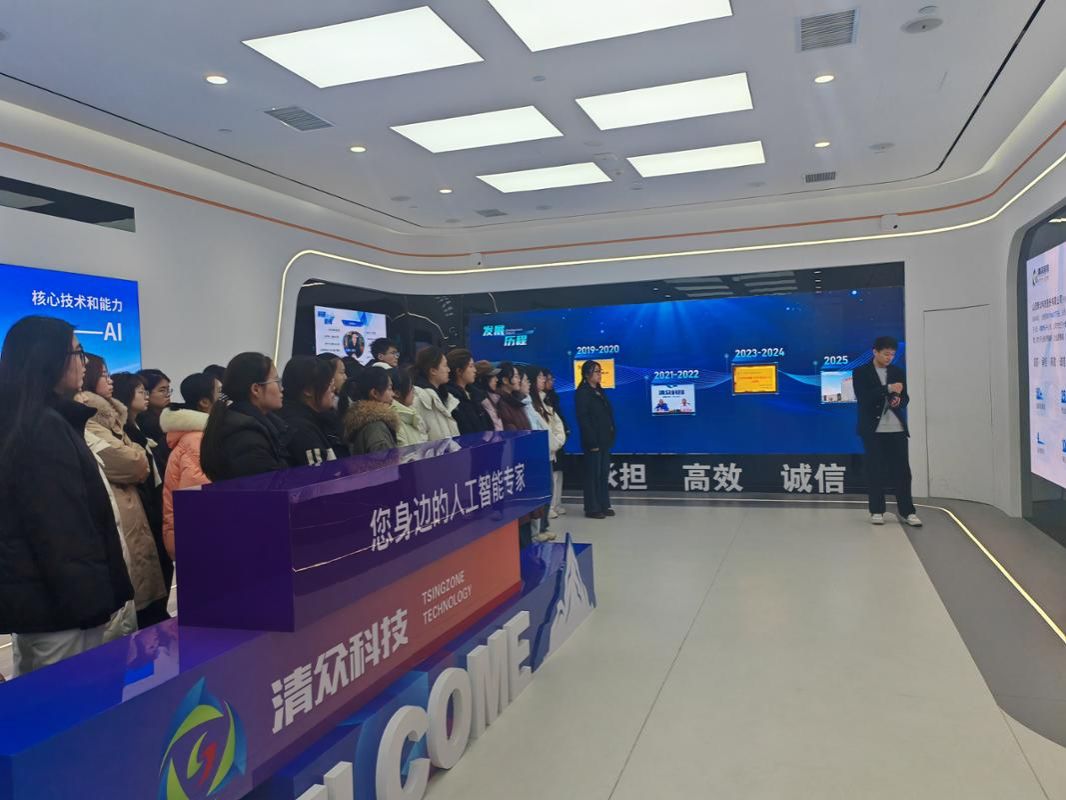 1月16日上午,betway88西汉姆参与实践的学生前往山西清众科技股份有限公司进行参观学习。在企业数字展厅,同学们通过大屏演示和典型案例讲解,系统了解了清众科技在政务数字化、能源数字化及信息安全等领域的技术成果与应用实践,切身感受到大数据与人工智能技术对传统产业转型升级的推动力量。参观结束后,企业举行了简短的开营仪式。清众科技股份有限公司常务副总经理、人工智能专家高志熙先生致辞,他鼓励同学们积极拥抱人工智能发展趋势,主动将理论知识与产业实践相结合,并表示公司高度重视与高校的合作,期待通过本次实训进一步促进校企双方在人才培养、项目共建等方面的深度协同。