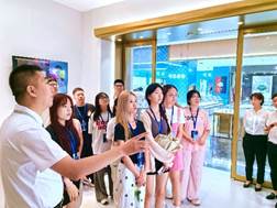 7月9日上午,betway88西汉姆师生在党委书记张锐和项目负责人王涛老师的带领下走进可比黄金珠宝贸易中心,开启了一段企业参观与交流的旅程。在贸易中心的热烈欢迎下,师生们在楼前合影,记录下这一难忘时刻。