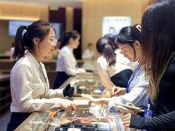 紧接着,大家参观了一层的展厅与品牌运营中心,深入探索了周大福、萃华等珠宝品牌的发展历史与深刻内涵,对品牌运营和产品特色有了更为直观的感受。